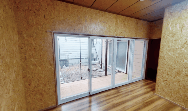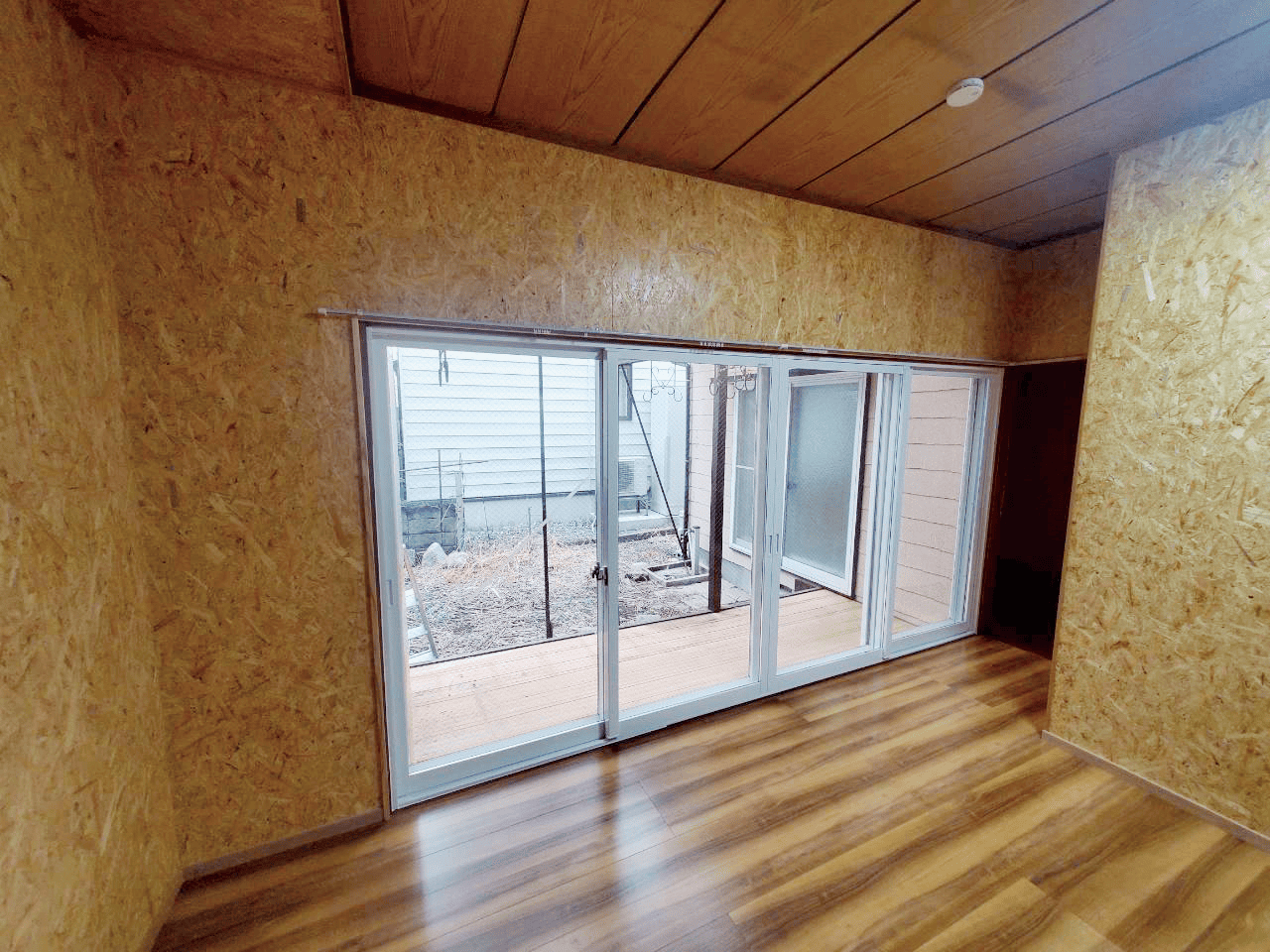 周辺には公園や商店街が徒歩圏に揃い、落ち着いた住宅街の中で利便性と静けさを兼ね備えています。風除室が玄関まわりを雨風や雪から守り、二重サッシが外気や騒音を遮ることで、室内の快適さと静けさをしっかりキープできます。さらに、木材を細かく砕いて圧縮したチップボードの壁が、素材でナチュラルな風合いと断熱・吸音性をもたらし、居心地の良い生活を過ごせます。